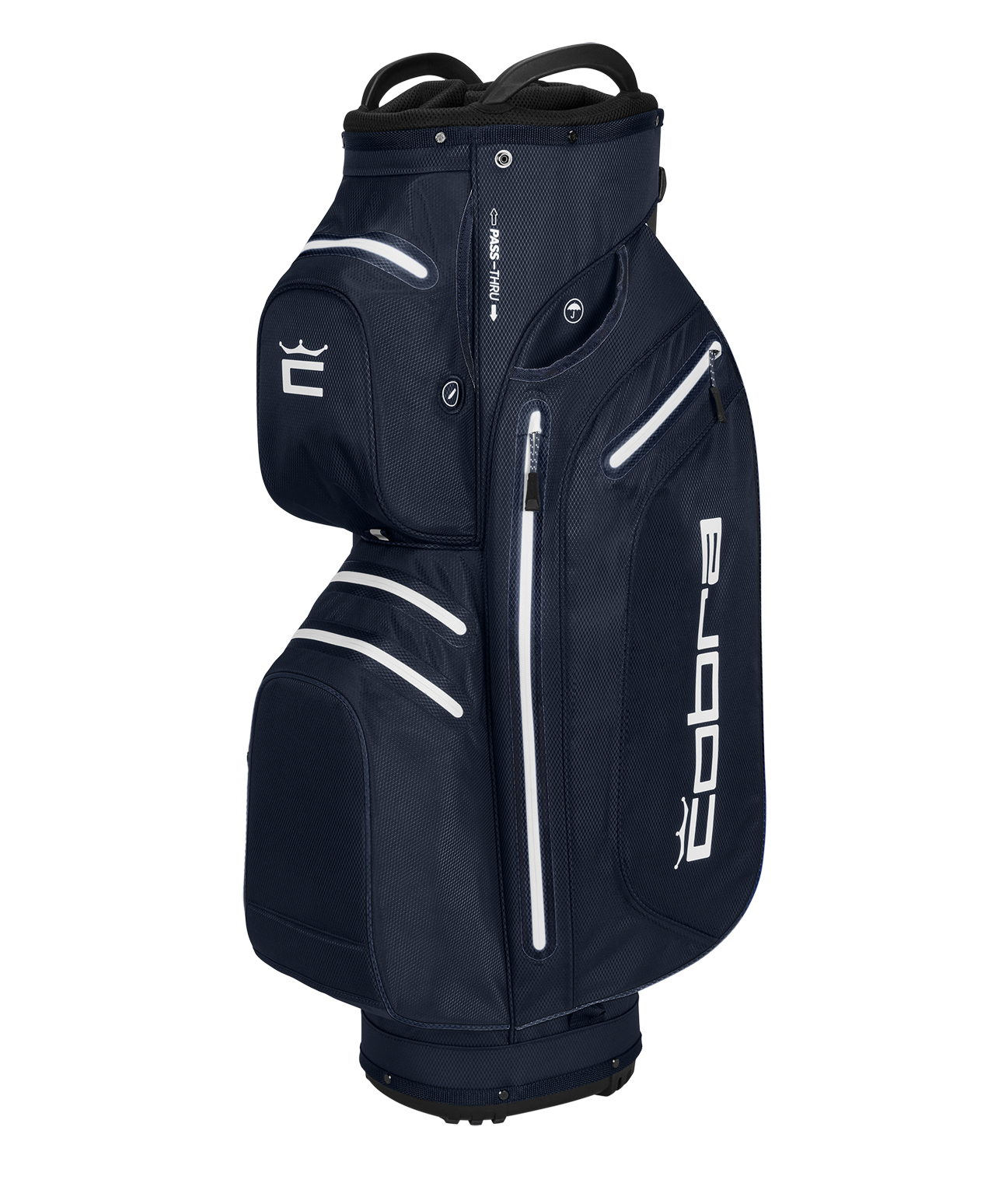 Leichtes und wasserdichtes Cartbag mit 14er Oberteil, durchgehenden Trennwänden und separatem Putterfach. Verklebte Nähte und wasserdichte Reißverschlüsse. Sieben Taschen. 2,4 Kilo.